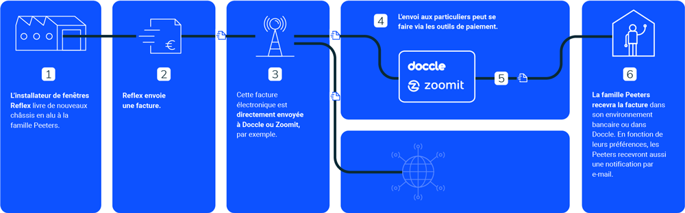 Une e-invoice est un message numérique en langage informatique. Dans le monde entier, le Universal Business Language (UBL) est le format de fichier standardisé pour les échanges commerciaux électroniques entre entreprises et pouvoirs publics. Cela se fait par le biais de Peppol, un réseau européen tellement populaire qu’il a franchi les frontières et s’est même implanté à Singapour, en Australie et en Nouvelle-Zélande.